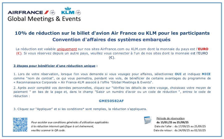Bénéficiez de tarifs réduits sur le réseau d'Air France et de KLM avec le code: GME50582AF